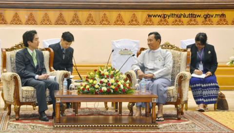 ပြည်သူ့လွှတ်တော်ဥက္ကဋ္ဌ သူရဦးရွှေမန်း သည် ဂျပန်နိုင်ငံ နိုင်ငံခြားရေးဝန်ကြီးဌာန၊ ဒုတိယဝန်ကြီး မစ္စတာ မီနိုရူ ကီယုချီ နှင့် မြန်မာနိုင်ငံ အမျိုးသားပြန်လည်သင့်မြတ်ရေး ဆိုင်ရာ ဂျပန်အစိုးရ၏ အထူးကိုယ်စားလှယ်၊ နိပွန်ဖောင်ဒေးရှင်းဥက္ကဋ္ဌ မစ္စတာ ယိုဟဲ ဆာဆာကာဝါ ဦးဆောင်သော ဂျပန် ကိုယ်စားလှယ်အဖွဲ့အား ယနေ့ နံနက် ၁၁ နာရီ ချိန်တွင် နေပြည်တော်ရှိ လွှတ်တော် အဆောက်အအုံ၊ ဇမ္ဗူသီရိဧည့်ခန်းမဆောင်၌ လက်ခံ တွေ့ဆုံသည်။