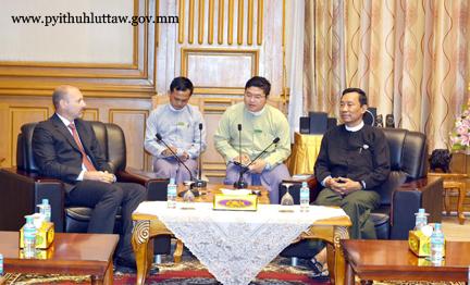 ပြည်သူ့လွှတ်တော်ဥက္ကဋ္ဌ သူရဦးရွှေမန်း သည် ဥရောပသမဂ္ဂ သံအမတ်ကြီး H.E. Mr. Roland Kobia အား ၂၀၁၅ ခုနှစ် သြဂုတ်လ (၂၁)ရက်နေ့ နံနက် (၀၉း၀၀)နာရီတွင် နေပြည်တော်ရှိ လွှတ်တော် အဆောက်အအုံ ပြည်သူ့လွှတ်တော်ဧည့်ခန်းမ၌ လက်ခံတွေ့ဆုံသည်။