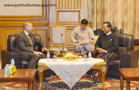 ပြည်သူ့လွှတ်တော်ဥက္ကဋ္ဌ သူရဦးရွှေမန်းသည် ဥရောပသမဂ္ဂသံအမတ်ကြီး H.E.Mr.Roland Kobia အား ၂၀၁၅ ခုနှစ် နိုဝင်ဘာလ ၁၈ ရက် နံနက် ၀၉း၅၀ နာရီတွင် နေပြည်တော်ရှိ လွှတ်တော် အဆောက်အအုံ ပြည်သူ့လွှတ်တော် ဧည့်ခန်းမဆောင်၌ လက်ခံတွေ့ဆုံခဲ့သည်။