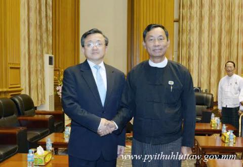 ပြည်သူ့လွှတ်တော်ဥက္ကဋ္ဌ သူရဦးရွှေမန်းသည် တရုတ်ပြည်သူ့သမ္မတနိုင်ငံ အစိုးရ၏ အထူး သံတမန်၊ နိုင်ငံခြားရေးဝန်ကြီးဌာန ဒုတိယဝန်ကြီး မစ္စတာလျိုကျန်းမင် ဦးဆောင်သော ကိုယ်စားလှယ်အဖွဲ့အား ယနေ့ မွန်းလွဲ ၁ နာရီတွင် နေပြည်တော်ရှိ လွှတ်တော်အဆောက်အအုံ ပြည်သူ့လွှတ်တော်ဧည့်ခန်းမ၌ လက်ခံတွေ့ဆုံသည်။