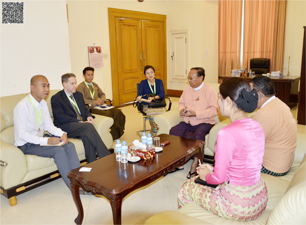 ပြည်သူ့လွှတ်တော်၊ တရားစီရင်ရေးနှင့် ဥပဒေရေးရာကော်မတီ ဥက္ကဋ္ဌ ဦးခင်မောင်ဝင်း Open Society Justice Initiative မှ အမှုဆောင်ညွှန်ကြားရေးမှူး Mr. James A. Goldston အား ယနေ့ မွန်းလွဲ ၂ နာရီ အချိန်တွင် နေပြည်တော်ရှိ လွှတ်တော်ရေးရာဆောင် အဆောင်အမှတ် (I-4) အစည်းအဝေးခန်းမ၌ လက်ခံတွေ့ဆုံသည်။