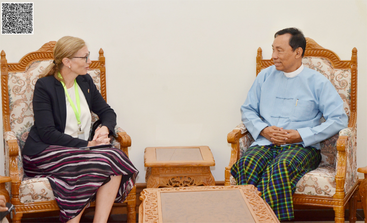 ပြည်ထောင်စုလွှတ်တော်၊ ဥပဒေရေးရာနှင့်အထူးကိစ္စရပ်များ လေ့လာဆန်းစစ်သုံးသပ်ရေး ကော်မရှင်ဥက္ကဋ္ဌ သူရဦးရွှေမန်းသည် ပြည်ထောင်စုသမ္မတမြန်မာနိုင်ငံဆိုင်ရာ နော်ဝေသံအမတ်ကြီး H.E. Ms Tone Tinnes အား ယနေ့နံနက် ၁၁ နာရီအချိန်တွင် နေပြည်တော်ရှိ လွှတ်တော် ရေးရာဆောင်အမှတ် (I-11) ၌ လက်ခံတွေ့ဆုံသည်။