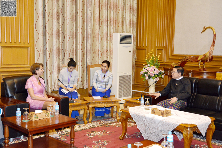 ပြည်သူ့လွှတ်တော်ဥက္ကဋ္ဌ ဦးတီခွန်မြတ် သည် ကုလသမဂ္ဂအတွင်းရေးမှူးချုပ်၏ မြန်မာနိုင်ငံဆိုင်ရာ အထူးကိုယ်စားလှယ် Ms. Christine Schraner Burgener ဦးဆောင်သည့် ကိုယ်စားလှယ်အဖွဲ့အား ယနေ့ မွန်းလွဲ ၃ နာရီတွင် နေပြည်တော်ရှိ လွှတ်တော်အဆောက်အအုံ၊ ပြည်သူ့လွှတ်တော်ဆောင် ဧည့်ခန်းမ၌ လက်ခံတွေ့ဆုံသည်။
