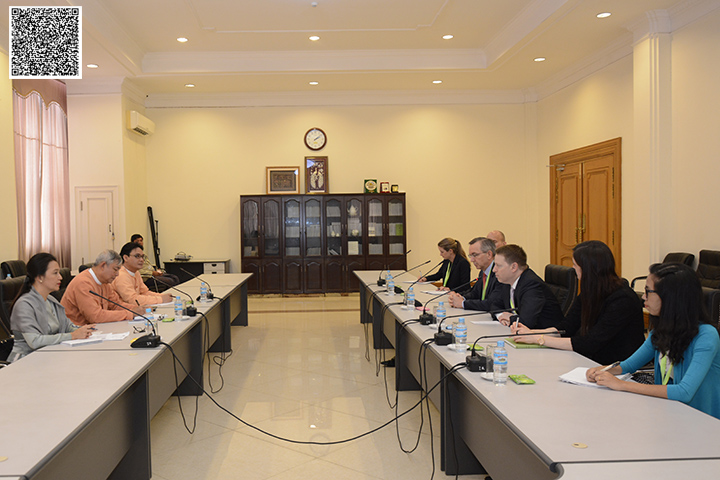 ပြည်သူ့လွှတ်တော်၊ နိုင်ငံတကာဆက်ဆံရေးကော်မတီ ဥက္ကဋ္ဌ ဦးဇော်သိန်းသည် အမေရိကန် ပြည်ထောင်စု၊ အိမ်ဖြူတော်ဆိုင်ရာ အမျိုးသားလုံခြုံရေးကောင်စီ၊ အာရှရေးရာ အကြီးတန်း ညွှန်ကြားရေးမှူး Mr. Matt Pottinger နှင့်အတူ မြန်မာနိုင်ငံဆိုင်ရာ အမေရိကန်နိုင်ငံသံအမတ်ကြီး H.E. Mr. Scot Marciel ဦးဆောင်သည့် အဖွဲ့အား ယနေ့ မွန်းလွဲ ၂ နာရီ အချိန်တွင် နေပြည်တော်ရှိ လွှတ်တော်ရေးရာဆောင် အဆောင်အမှတ် (I-5) ၌ လက်ခံ တွေ့ဆုံသည်။
