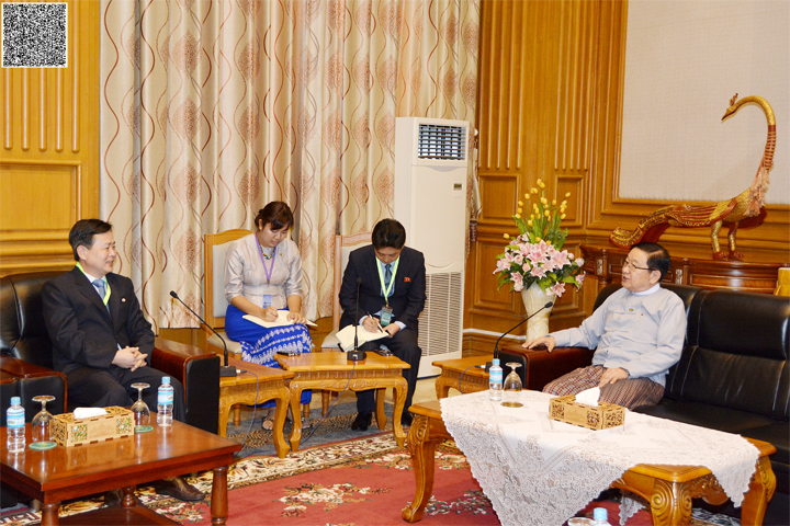 ပြည်သူ့လွှတ်တော်ဥက္ကဋ္ဌ ဦးတီခွန်မြတ် သည် ပြည်ထောင်စုသမ္မတမြန်မာနိုင်ငံတော် ဆိုင်ရာ ကိုရီးယားဒီမိုကရက်တစ်ပြည်သူ့သမ္မတနိုင်ငံ မှ သံအမတ်ကြီး H.E. Mr. Jong Ho Bom အား ယနေ့ မွန်းလွဲ ၁ နာရီတွင် နေပြည်တော်ရှိ လွှတ်တော်အဆောက်အအုံ ပြည်သူ့လွှတ်တော် ဧည့်ခန်းမ၌ လက်ခံ တွေ့ဆုံသည်။