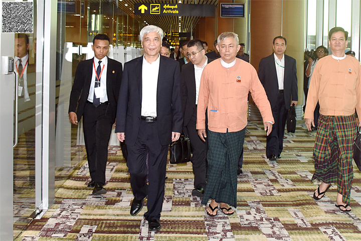 ပြည်ထောင်စုလွှတ်တော် ဒုတိယနာယက၊ ပြည်သူ့လွှတ်တော် ဒုတိယဥက္ကဋ္ဌ ဦးထွန်းထွန်းဟိန် ၏ ဖိတ်ကြားချက်အရ ပြည်ထောင်စုသမ္မတမြန်မာနိုင်ငံတော်သို့ ချစ်ကြည်ရေးခရီး လာရောက် လည်ပတ်သော တရုတ်ပြည်သူ့သမ္မတနိုင်ငံ၊ အမျိုးသား ပြည်သူ့ကွန်ကရက် (NPC) အမြဲတမ်း ကော်မတီ ဒုတိယဥက္ကဋ္ဌ H.E.Mr. Ding Zhongli ဦးဆောင်သော ကိုယ်စားလှယ်အဖွဲ့သည် ယနေ့ ညနေ ၁၇ နာရီ ၂၀ မိနစ်တွင် နေပြည်တော်သို့ UB 121 လေယာဉ်ဖြင့် ရောက်ရှိခဲ့ကြသည်။