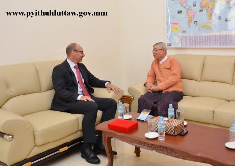 အလားတူ EU သံအမတ်ကြီးနှင့် တွေ့ဆုံစဉ် ငြိမ်းချမ်းရေး ဆွေးနွေးပွဲများ ဆက်လက်ကျင်းပရေး၊ မြေမြှုပ်မိုင်းများ ရှင်းလင်းရေးနှင့် မြန်မာ- EU ဆက်ဆံရေးပိုမိုတိုးမြှင့်ရေး ဆွေးနွေးခဲ့ကြသည်။