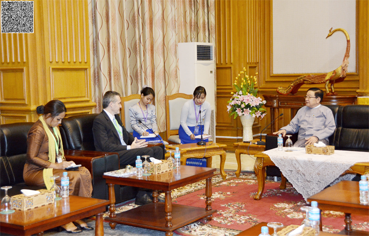 ပြည်သူ့လွှတ်တော်ဥက္ကဋ္ဌ ဦးတီခွန်မြတ် သည် တာဝန်ပြီးဆုံး၍ ပြန်လည်ထွက်ခွာ တော့မည့် ဘန်ကောက်မြို့အခြေစိုက် ပြည်ထောင်စုသမ္မတမြန်မာနိုင်ငံတော်ဆိုင်ရာ ဟန်ဂေရီနိုင်ငံ၊ သံအမတ်ကြီး H.E. Dr. Peter JAKAB အား ယနေ့ မွန်းလွဲ ၁ နာရီတွင် နေပြည်တော်ရှိ လွှတ်တော်အဆောက်အအုံ၊ ပြည်သူ့လွှတ်တော်ဆောင် ဧည့်ခန်းမ၌ လက်ခံတွေ့ဆုံသည်။