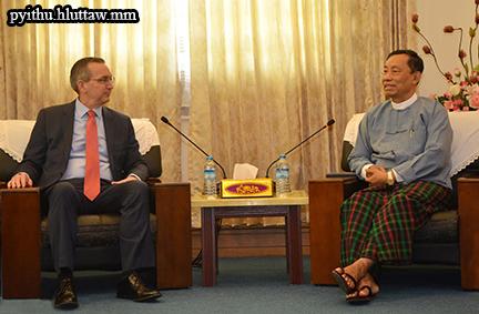 ပြည်ထောင်စုလွှတ်တော်၊ ဥပဒေရေးရာနှင့် အထူးကိစ္စရပ်များ လေ့လာဆန်းစစ် သုံးသပ်ရေး ကော်မရှင်ဥက္ကဋ္ဌ သူရဦးရွှေမန်းသည် ပြည်ထောင်စုသမ္မတ မြန်မာနိုင်ငံဆိုင်ရာ သံအမတ်ကြီး များဖြစ်ကြသော အမေရိကန်နိုင်ငံသံအမတ်ကြီး H.E. Mr. Scot Marciel၊ ဗြိတိန်နိုင်ငံသံ အမတ်ကြီး H.E.Mr. Andrew Patrick နှင့် ဥရောပသံအမတ်ကြီး H.E.Mr Roland Kobia တို့အား ယနေ့ နံနက် ၉ နာရီခွဲတွင် နေပြည်တော်ရှိ လွှတ်တော် အဆောက်အဦ ရေးရာ ဆောင်အမှတ် (I-1) ဧည့်ခန်းမ၌ လက်ခံတွေ့ဆုံသည်။