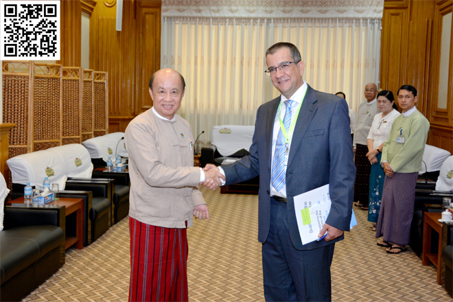 ပြည်သူ့လွှတ်တော် ဒုတိယဥက္ကဋ္ဌ၊ လွှတ်တော်များ ဖွံ့ဖြိုးတိုးတက်ရေးဆိုင်ရာ ပေါင်းစပ်ညှိနှိုင်းဆောင်ရွက်ရေးအဖွဲ့ (JCC) ဥက္ကဋ္ဌ ဦးထွန်းထွန်းဟိန် MYPOL Project ၏ EU Consultant – Mr. Ian White ဦးဆောင်သော ကိုယ်စားလှယ်အဖွဲ့အား ယနေ့ နံနက် ၁၀ နာရီတွင် နေပြည်တော်ရှိ လွှတ်တော်အဆောက်အအုံ၊ ပြည်သူ့လွှတ်တော် ဒုတိယဥက္ကဋ္ဌ ရုံးခန်း၌ လက်ခံတွေ့ဆုံသည်။