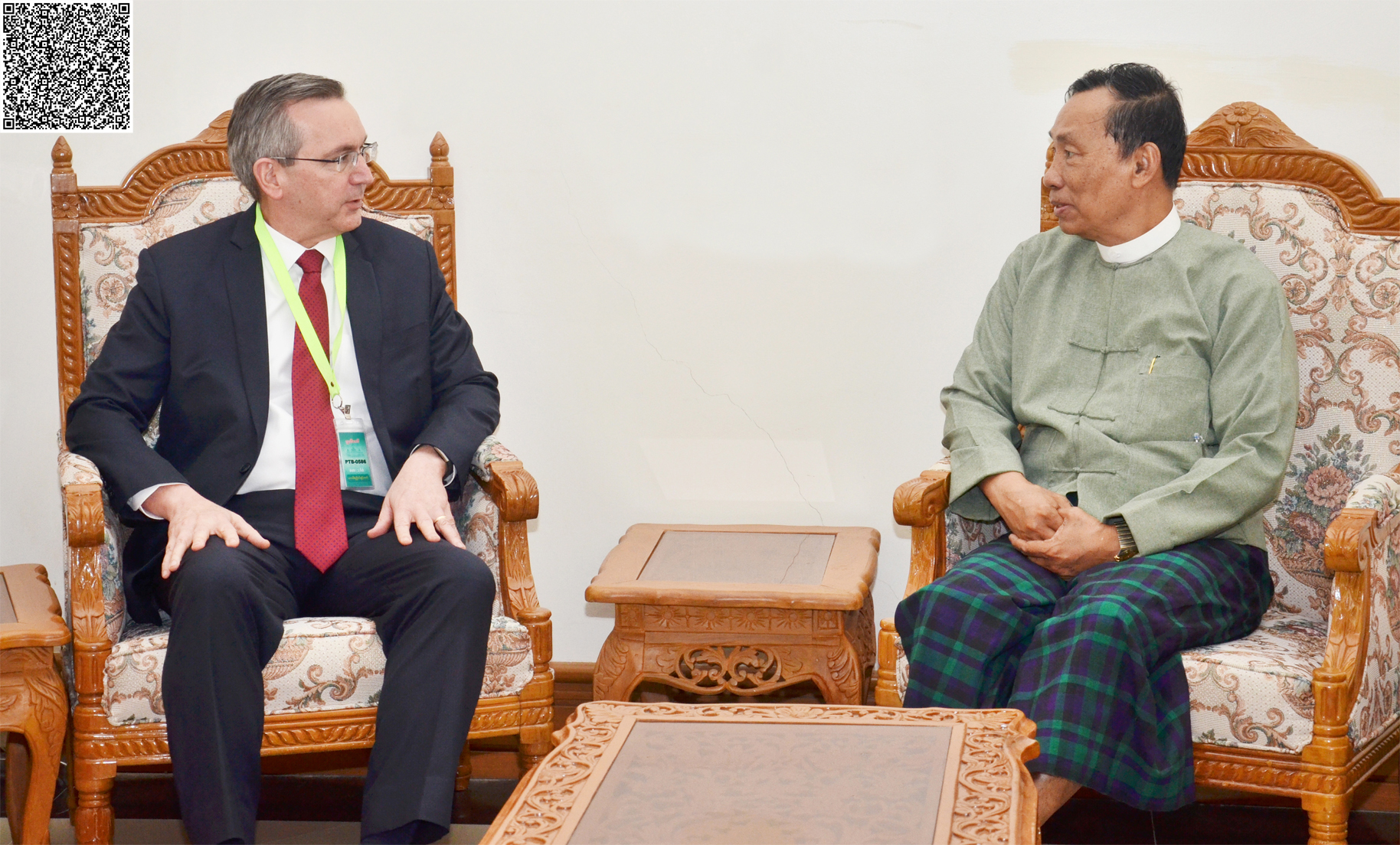 ပြည်ထောင်စုလွှတ်တော်၊ ဥပဒေရေးရာနှင့်အထူးကိစ္စရပ်များ လေ့လာဆန်းစစ်သုံးသပ်ရေး ကော်မရှင် ဥက္ကဋ္ဌ သူရဦးရွှေမန်းသည် ပြည်ထောင်စုသမ္မတမြန်မာနိုင်ငံတော်ဆိုင်ရာ အမေရိကန် သံအမတ်ကြီး H.E. Mr. Scot Marciel အား ယနေ့ မွန်းလွဲ ၂ နာရီအချိန်တွင် နေပြည်တော်ရှိ လွှတ်တော်ရေးရာဆောင်အမှတ် (I-11) ၌ လက်ခံတွေ့ဆုံသည်။