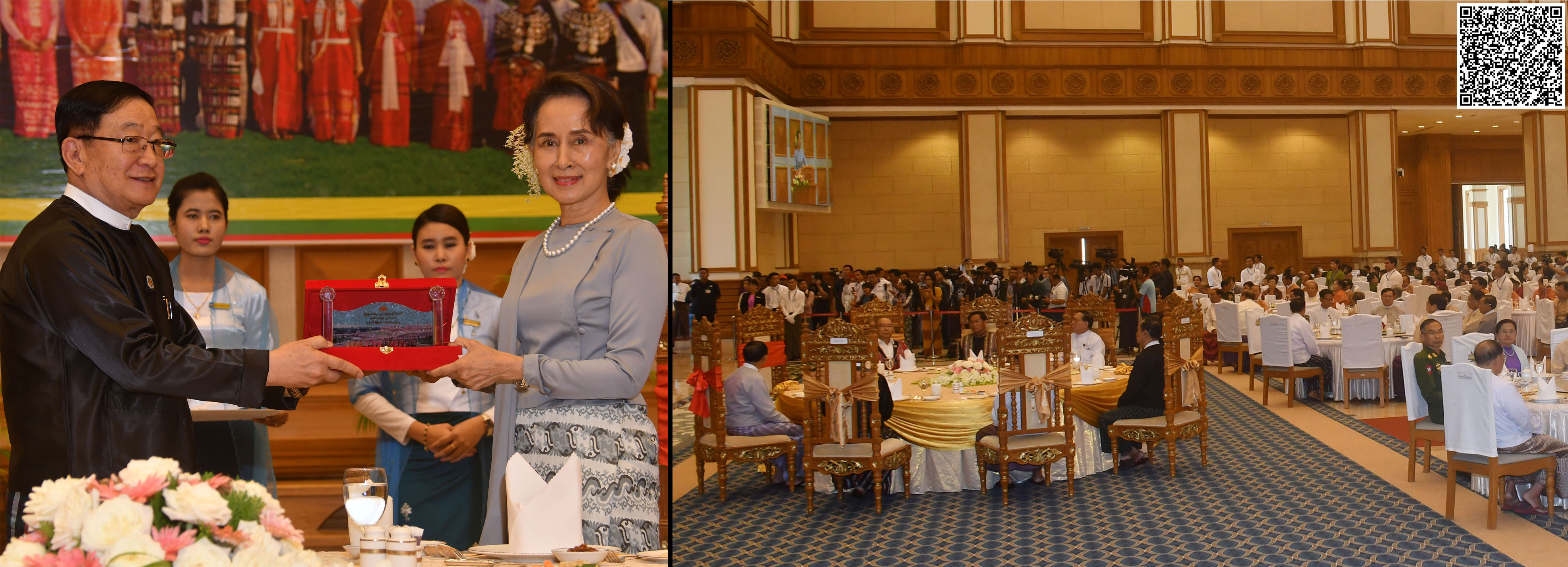 ယင်းနောက် နိုင်ငံတော်သမ္မတ၊ နိုင်ငံတော်၏ အတိုင်ပင်ခံပုဂ္ဂိုလ်၊ ဒုတိယသမ္မတများ၊ ပြည်သူ့လွှတ်တော်ဥက္ကဋ္ဌ၊ အမျိုးသားလွှတ်တော်ဥက္ကဋ္ဌတို့သည် နှစ်ပတ်လည်နေ့ အခမ်းအနားသို့ တက်ရောက်လာကြသူများနှင့်အတူ ဂုဏ်ပြုနေ့လယ်စာကို အတူတကွ သုံးဆောင်ကြသည်။