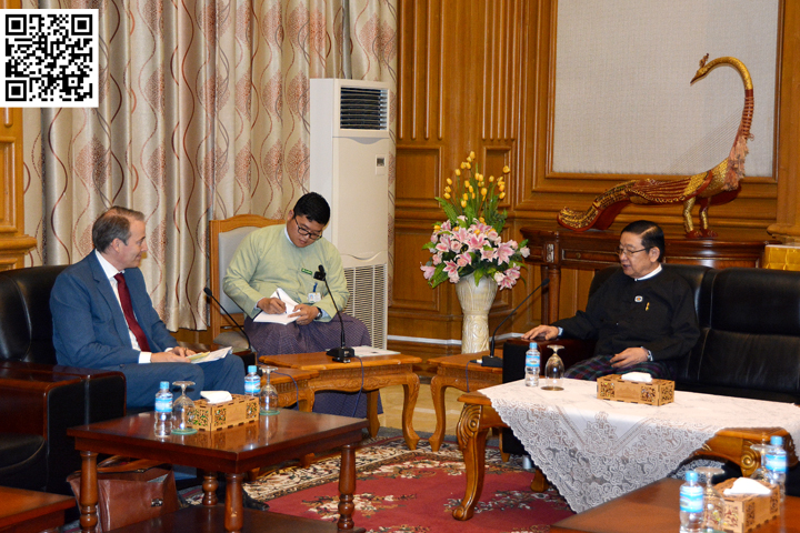 ပြည်သူ့လွှတ်တော်ဥက္ကဋ္ဌ ဦးတီခွန်မြတ်သည် ပြည်ထောင်စုသမ္မတ မြန်မာနိုင်ငံတော်ဆိုင်ရာ ဥရောပသမဂ္ဂ သံအမတ်ကြီး H.E. Mr. Kristian Schmidt အား ယနေ့ မွန်းလွဲ ၃ နာရီခွဲတွင် နေပြည်တော်ရှိ လွှတ်တော် အဆောက်အအုံ၊ ပြည်သူ့လွှတ်တော် ဧည့်ခန်းမဆောင်၌ လက်ခံတွေ့ဆုံသည်။