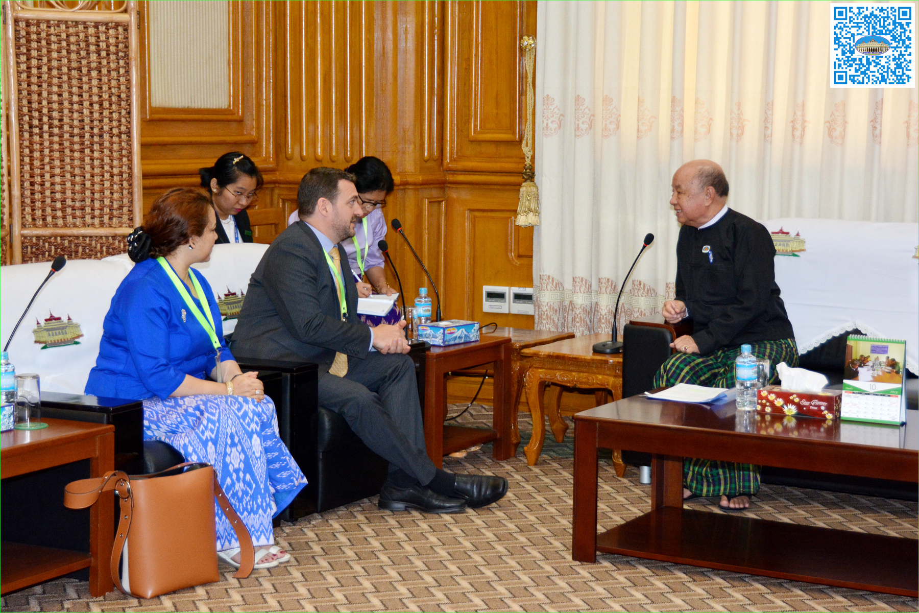 အဆိုပါတွေ့ဆုံပွဲသို့ ပြည်သူ့လွှတ်တော် ဒုတိယဥက္ကဋ္ဌနှင့်အတူ ပြည်သူ့လွှတ်တော်၊ နိုင်ငံတကာ ဆက်ဆံရေး ကော်မတီ အတွင်းရေးမှူး ဦးဘိုဘိုဦး၊ အမျိုးသမီးနှင့် ကလေးသူငယ် အခွင့်အရေးဆိုင်ရာ ကော်မတီ အတွင်းရေးမှူး ဒေါက်တာဒေါ်ကြည်မို့မို့လွင်နှင့် ပြည်သူ့လွှတ်တော်ရုံးမှ တာဝန်ရှိသူများ တက်ရောက်ခဲ့ကြသည်။