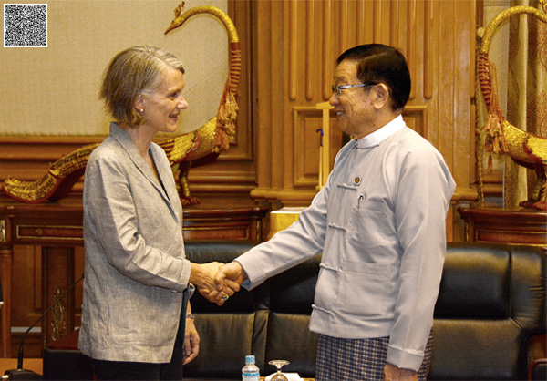 ပြည်သူ့လွှတ်တော်ဥက္ကဋ္ဌ ဦးတီခွန်မြတ်သည် ပြည်ထောင်စုသမ္မတမြန်မာနိုင်ငံတော်ဆိုင်ရာ သြစတြေးလျ နိုင်ငံသံအမတ်ကြီး H.E. Ms. Andrea Faulkner အား ယနေ့နံနက် ၁၁ နာရီ တွင် နေပြည်တော်ရှိ လွှတ်တော်အဆောက်အအုံ၊ ပြည်သူ့လွှတ်တော်ဆောင် ဧည့်ခန်းမ၌ လက်ခံတွေ့ဆုံသည်။