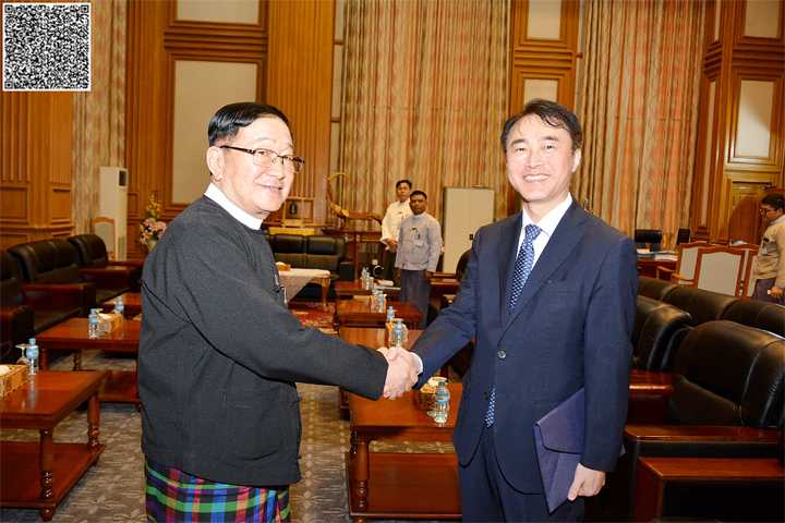ပြည်သူ့လွှတ်တော်ဥက္ကဋ္ဌ ဦးတီခွန်မြတ် သည် ပြည်ထောင်စုသမ္မတမြန်မာ နိုင်ငံတော်ဆိုင်ရာ ကိုရီးယား သမ္မတနိုင်ငံ သံအမတ်ကြီး H.E. Mr. Lee Sang-hwa အား ယနေ့မွန်းလွဲ ၄ နာရီတွင် နေပြည်တော်ရှိ လွှတ်တော်အဆောက်အအုံ၊ ပြည်သူ့လွှတ်တော်ဆောင် ဧည့်ခန်းမ၌ လက်ခံတွေ့ဆုံသည်။