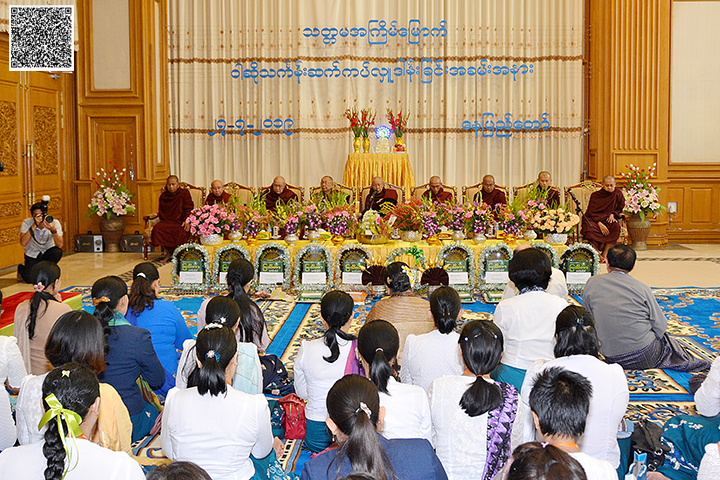 အခမ်းအနားသို့ နေပြည်တော်၊ ပျဉ်းမနားမြို့၊ မဟာဝိသုတာရာမဈေးကုန်း ကျောင်းတိုက်ကြီး၏ ပဓာနနာယက၊ နိုင်ငံတော်သြဝါဒစရိယ၊ အဘိဓဇမဟာရဋ္ဌဂုရု၊ အဂ္ဂမဟာပဏ္ဍိတ၊ အဂ္ဂမဟာ ဂန္ထဝါစကပဏ္ဍိတ၊ သာသနဓဇ သိရီပဝရဓမ္မာစရိယ ဘဒ္ဒန္တကဝိသာရ ဆရာတော်ကြီးအမှူးပြုသော သံဃာတော် အရှင်မြတ်တို့ ကြွရောက်ကြ သည်။