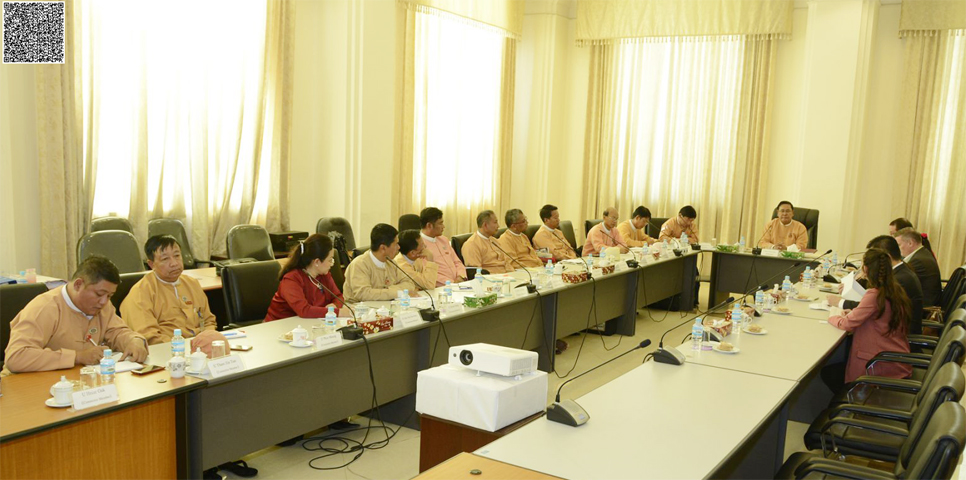 ပြည်သူ့လွှတ်တော်၊ ရင်းနှီးမြှုပ်နှံမှုနှင့် စက်မှုလက်မှုဖွံ့ဖြိုးတိုးတက်ရေး ကော်မတီ ဥက္ကဋ္ဌ ဦးဝင်းသိန်းဇော် သည် Eurocham Myanmar အဖွဲ့အား ယနေ့ မွန်းလွဲ ၂ နာရီခွဲအချိန်တွင် နေပြည်တော်ရှိ လွှတ်တော် ရေးရာဆောင်၊ အဆောင်အမှတ် (I-8) အစည်းအဝေးခန်းမ၌ လက်ခံတွေ့ဆုံ သည်။