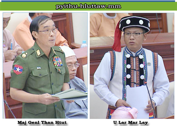 ဝန်ကြီးက သဘာဝဘေးဒဏ်ကြောင့် ပျက်စီးခဲ့သည်ဟု ဖြေကြားသွားပါကြောင်း၊ မိမိထင်မြင်မိသည်မှာ သဘာဝဘေးဒဏ်ကြောင့် မဟုတ်ဘဲ လုပ်ငန်းအတိုင်းအတာ မပြည့်မီသောကြောင့် ပျက်စီးခဲ့သည်ဟု ဆိုချင်ပါကြောင်း၊ ပြီးခဲ့သည့် (၁၁) ကြိမ်မြောက် ပုံမှန်အစည်းအဝေးတွင်လည်း ထန်ဒန်တံတားကိစ္စနှင့် မေးခွန်းတင်ခဲ့ပါကြောင်း၊ ၎င်းနေရာတွင် ဝန်ကြီးဖြေသည်က ထန်ဒန်တံတား ပျက်စီးခဲ့ရသည့် အကြောင်းအရင်းက ဝန်ကြီးယခုဖြေကြား သွားသည့်အတိုင်း ဖြစ်ပါကြောင်း၊ ရှင်းရှင်းပြောမည်ဆိုလျှင် ၎င်းတံတားပေါ်မှ တရားမဝင်သတ္တုကား တစ်စီးပြီးတစ်စီး ဖြတ်ရမည့်ကိစ္စကို တစ်ခါတည်းနှစ်စီး၊ သုံးစီးဖြတ်ပြီးမှ တံတားပျက်စီးခဲ့သည်ဟု ဖြေထားခြင်းမျိုးလည်း ရှိပါကြောင်း၊ မိမိဆိုလိုချင်သည်မှာ ယခုအချိန်ထိ ဒေသခံလည်းမေး၍မရ၊ ယခုအချိန်လည်း ဖြစ်နိုင်မည်ဆိုလျှင် ပြည်ထောင်စုအဆင့် ပုဂ္ဂိုလ်ကို မိမိတို့ဘက်က လမ်းစရိတ်အကုန်ခံပြီးမှ ခေါ်သွားချင်ပါကြောင်း၊ အဆိုပါနေရာက ကားမပြောနှင့် ဆိုင်ကယ်တောင် ဖြတ်၍မရပါကြောင်း၊ လူတောင်မှ ခက်ခက်ခဲခဲသွားရပါကြောင်း၊ ယခုလည်း အဆိုပါ ရေတားတမံပျက်စီးခဲ့ရသည့် အကြောင်းအရင်းက အမှန်တကယ် ပြည်ထောင်စု ဝန်ကြီးအနေဖြင့် သေချာမသိနိုင်ပါကြောင်း၊ ဆက်စပ်မေးခွန်းအနေဖြင့် ယခုအဆိုပါ ရေတားတမံ ပျက်စီးခဲ့ရသည့် အကြောင်းအရင်းကို အောက်ခြေကနေရေးသားပြီးမှ ဖော်ပြသည်ကို လာရောက်ဖြေကြား ပေးခြင်းမျိုး မဟုတ်ဘဲ ပြည်ထောင်စုအစိုးရအဖွဲ့ အနေဖြင့် နယ်စပ်ရေးရာ ဝန်ကြီးဌာနက ရေတားတမံအမှန်တကယ် ပျက်စီးခဲ့ရခြင်းအကြောင်းကို သေချာပြန်လည်စိစစ် ပေးနိုင်ခြင်းရှိ/မရှိကို မိမိအနေဖြင့် ဆက်စပ်မေးခွန်း မေးမြန်းပါသည်။
