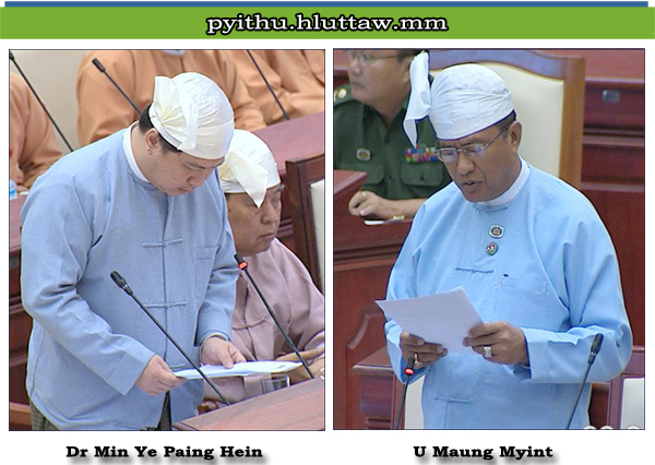 အနိုင်ကျင့်သည့်ဆုံးဖြတ်ချက်မျိုးကို မည်သည့်လုပ်ငန်းရှင် မည်သည့်ပြည်သူမျှ လိုလားမည် မဟုတ်ပါကြောင်း၊ တာဝန်ယူမှု၊ တာဝန်ခံမှုဆိုသည်တို့ကို တွင်တွင်ပြောနေသာ်လည်း အဆိုပါကိစ္စတွင် လွန်ခဲ့သည့်နှစ်နှစ်အထိ မည်သည့်တာဝန်ယူမှု၊ တာဝန်ခံမှုမျှ မတွေ့ရ ပါကြောင်း၊ အလားတူ Good Government ကို ပြသနိုင်သည်လည်း ကြိုးစားခြင်း မတွေ့ ရပါကြောင်း၊ ၎င်းကိစ္စသည်မြန်မာနိုင်ငံတွင်သာ ကုမ္ပဏီများကသည်းငြင်းခံပြီး မိမိတို့ က ငွေစိုက်ထားပါကြောင်း၊ တရားဝင်လုပ်ပါကြောင်း၊ နှစ်နှစ်၊ သုံးနှစ်ကြာသည်အထိ ငွေမရပါ ကြောင်း၊ သို့သော် အစိုးရကို တရားစွဲခြင်းမျိုးလည်း မရှိခဲ့ပါကြောင်း၊ နိုင်ငံခြားတွင် တရားစွဲခံ ရမည်မှာ သေချာပါကြောင်း၊ ပြီးခဲ့သည့်တစ်ပတ်က ကိုယ်စားလှယ်တစ်ဦး ဆွေးနွေးသလို တာဝန်ရှိသူကို ဖော်ထုတ်သည်က ပြီးပြည့်စုံသည့် Solution မဟုတ်ပါကြောင်း၊ စိုက်ထုတ် ကုန်ကျငွေများကို ဖြစ်နိုင်သမျှ ဖြေလျှော့နိုင်သည့်ဘဏ္ဍာရေးစည်းမျဉ်းများနှင့်အညီ ပြန်ထုတ်ပေးနိုင်ရန် Solution ဖြစ်ပါကြောင်း၊ မည်သို့ပင်ဆိုစေကာမူ မြင်းခြံသံမဏိစက်ရုံ၏ ကြွေးကျန်များနှင့် ၉၅ ရာခိုင်နှုန်းတွင်ပါရှိအောင် တာဝန်ယူမှု၊ တာဝန်ခံမှုရှိရှိဖြင့် ထောက်ခံပြောကြားပေးသော ပြည်သူ့ငွေစာရင်းပူးပေါင်းကော်မတီက ဦးအောင်မြင်နှင့် ထောက်ခံမဲ ပေးကြသော ကိုယ်စားလှယ် ၄၂၂ ယောက်ကို ကျေးဇူးတင်ပါကြောင်းလည်း ကုမ္ပဏီများ ကိုယ်စား ပြောကြားလိုပါကြောင်း၊ ထို့ကြောင့် စက်မှုဝန်ကြီးဌာနအနေဖြင့် ကျပ်ငွေ ၁၉ ဘီလီယံခန့် များပြားသောငွေကြေးများကို တင်ဒါအဖြစ် တရားဝင်ဆောင်ရွက်ထားသော ကုမ္ပဏီများသို့ ဘတ်ဂျက်မရှိသေးမှုအကြောင်းပြပြီး ကိုယ်စားလှယ်ပေးမဲ ၂ မိနစ်ခန့် ဆိုင်းငံ့ထားမှုအပေါ်ကုမ္ပဏီများနစ်နာမှုမရှိစေရေးအတွက် မည်ကဲ့သို့ ဆက်လက်ဆောင်ရွက် ပေးမည်ကို သိလိုပါကြောင်း မေးမြန်းပါသည်။