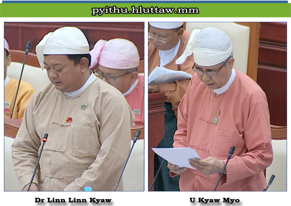 မြစ်သားမြို့၊ ဘူတာရပ်ကွက်နှင့် ယွေးကျေးရွာတို့ရှိ ရေကြီးရေလျှံ ရေဝင်ရောက်မှုဒဏ်ကို ခံစားနေသည့် ပြည်သူများ ကိုယ်စား မေးခွန်း မေးမြန်းသွားမည် ဖြစ်ကြောင်း၊ မြစ်သားမြို့နယ်တွင် အဓိကကျသည့် မြစ်နှစ်စင်း ရှိပါကြောင်း၊ ပန်းလောင်မြစ်နှင့် စမုံမြစ်များ ဖြစ်ကြောင်း၊ ၎င်းမြစ်များ ရှိသည့်အတွက် မိမိတို့မြို့နယ်သာမက တခြားနီးစပ်သည့် မြို့နယ်များပါ ကောင်းကျိုးများစွာကို စံစားခံစားရသော်လည်း မိမိတို့ မြို့နယ်တွင်ရှိသည့် မြစ်ဘေးရှိ ရွာများသည် ရေကြီးရေလျှံမှုဒဏ်ကို နှစ်စဉ်ခံစားနေရပါကြောင်း၊ ထို့ကြောင့် ပြည်သူ့လွှတ်တော်တွင် စမုံမြစ်ဘေးနားရှိ ရွာများ၊ ပန်းလောင် မြစ်ဘေးနားရွာများအတွက် ရေကြီး ရေလျှံမှုဒဏ်ကို ရေတို၊ ရေရှည် စီမံကိန်းများနှင့် မည်သို့ဆောင်ရွက်မည်ကို မိမိမေးမြန်းချက်ကို သက်ဆိုင်ရာဝန်ကြီးဌာနက ဖြေကြားရာတွင် မြို့နယ်၊ တိုင်းဒေသကြီး၊ ခရိုင်များနှင့် ဌာနဆိုင်ရာများ အားလုံးပူးပေါင်းပြီး ရေရှည်၊ ရေတို စီမံကိန်းများနှင့် ဆောင်ရွက်မည်ဟု ပြန်လည်ဖြေကြားမှုအပေါ်ကို ကြိုဆိုပါကြောင်း၊