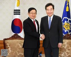 ပြည်ထောင်စုသမ္မတမြန်မာနိုင်ငံတော် ပြည်သူ့လွှတ်တော်ဥက္ကဋ္ဌ ဦးတီခွန်မြတ် ကိုရီးယား သမ္မတနိုင်ငံ၊ ဝန်ကြီးချုပ် H.E. Mr. Lee Nak-yon နှင့် တွေ့ဆုံ