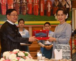 ပြည်ထောင်စုသမ္မတ မြန်မာနိုင်ငံတော်၊ ပြည်သူ့လွှတ်တော် ဥက္ကဋ္ဌဦးတီခွန်မြတ် ထိုင်း-မြန်မာလွှတ်တော်ချင်း ချစ်ကြည်ရင်းနှီးရေး အသင်းဥက္ကဋ္ဌ Hon. Gen. Ongard Pongsakdi အား လက်ခံတွေ့ဆုံ