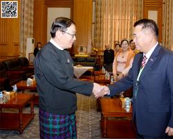ပြည်ထောင်စုသမ္မတမြန်မာနိုင်ငံတော်၊ ပြည်သူ့လွှတ်တော်ဥက္ကဋ္ဌ ဦးတီခွန်မြတ် ပြည်ထောင်စုသမ္မတ မြန်မာနိုင်ငံတော်ဆိုင်ရာ တရုတ်ပြည်သူ့သမ္မတနိုင်ငံ သံအမတ်ကြီး H.E. Mr. Hong Liang အား လက်ခံတွေ့ဆုံ