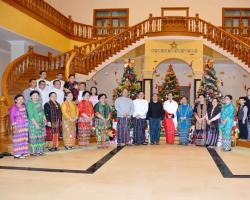 နိုင်ငံတော်သမ္မတ ဦးဝင်းမြင့်နှင့်ဇနီး ဒေါ်ချိုချို၊ နိုင်ငံတော်၏အတိုင်ပင်ခံပုဂ္ဂိုလ် ဒေါ်အောင်ဆန်းစုကြည် ပြည်သူ့လွှတ်တော်ဥက္ကဋ္ဌ နေအိမ်၌ကျင်းပသည့် ခရစ်တော်မွေးနေ့(ခရစ္စမတ်)ဝတ်ပြုဆုတောင်းခြင်းနှင့် ကျေးဇူးတော်ချီးမွမ်းခြင်း နေ့လယ်စာစားပွဲသို့ တက်ရောက်